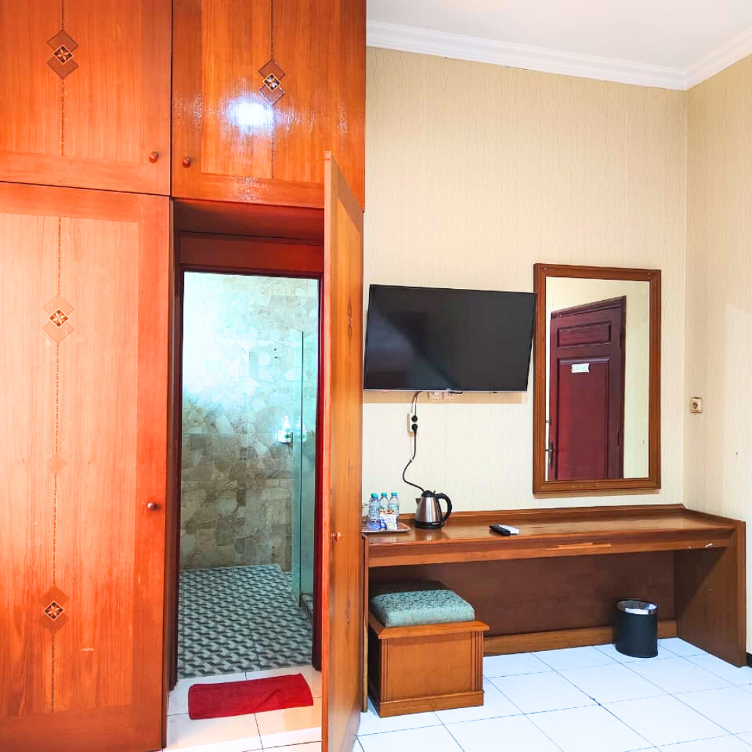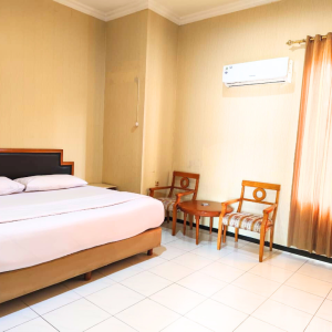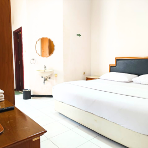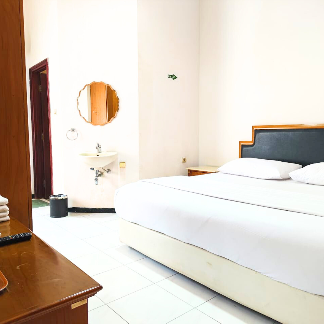 Kamar Deluxe kami dilengkapi fasilitas premium seperti tempat tidur nyaman berukuran besar, TV layar datar, AC, meja kerja ergonomis, lemari pakaian, serta kamar mandi pribadi dengan shower air panas. Tak ketinggalan, koneksi WiFi cepat dan complimentary amenities kami siapkan untuk menunjang kenyamanan masa menginap Anda, baik untuk keperluan bisnis maupun liburan.